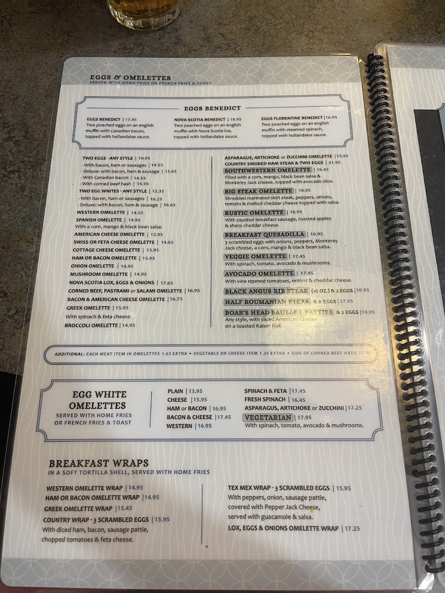 Start your morning with comforting dishes like their Big Steak Omelette, Pancakes with Raspberries, or the Homemade Challah French Toast paired with sausage. These options embody the warmth and simplicity of a classic diner breakfast, ideal for those who appreciate hearty, well-prepared morning meals.